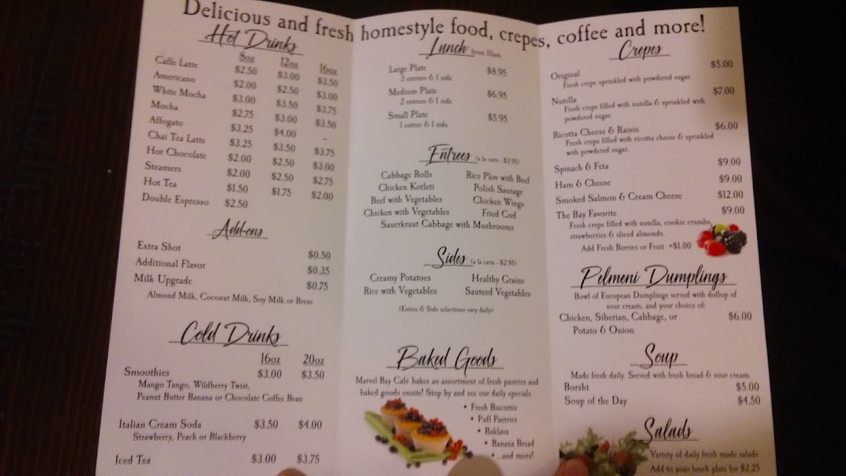 Marvel Bay Cafe also excels in drinks, offering refreshing smoothies and flavorful Italian Cream Soda, making it a delightful spot for any time of day. The atmosphere is warm and inviting, enhanced by attentive and friendly staff eager to guide you through their exquisite offerings. Each dish reflects a meticulous attention to flavor, framed by customer praises for the authenticity and presentation. Whether enjoying a comforting Salmon Sandwich or a delightful espresso, the cafe promises a remarkable experience that captivates your senses, making each visit special.